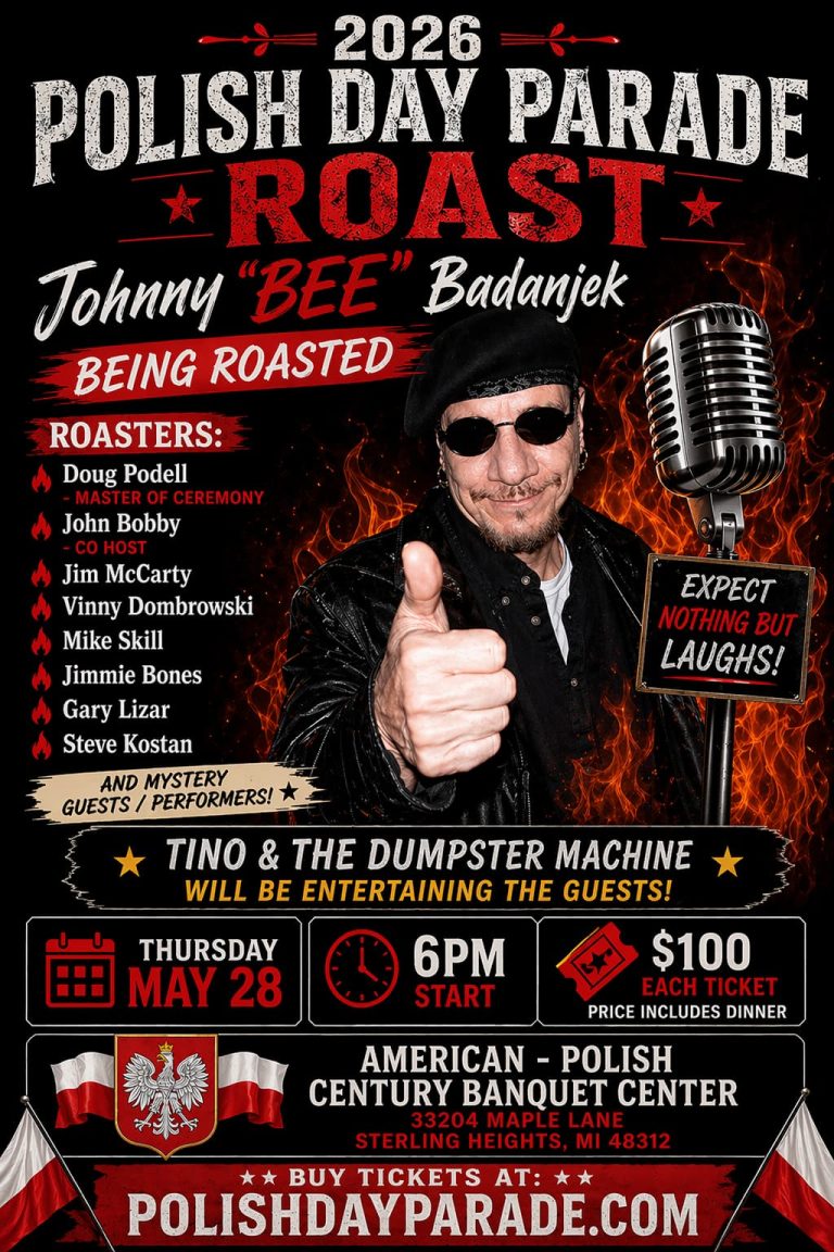 Join us for an unforgettable night in support of the Polish Day Parade. A special thank you to Doug Podell for helping line up our special guest, Johnny “Bee” Badanjek.